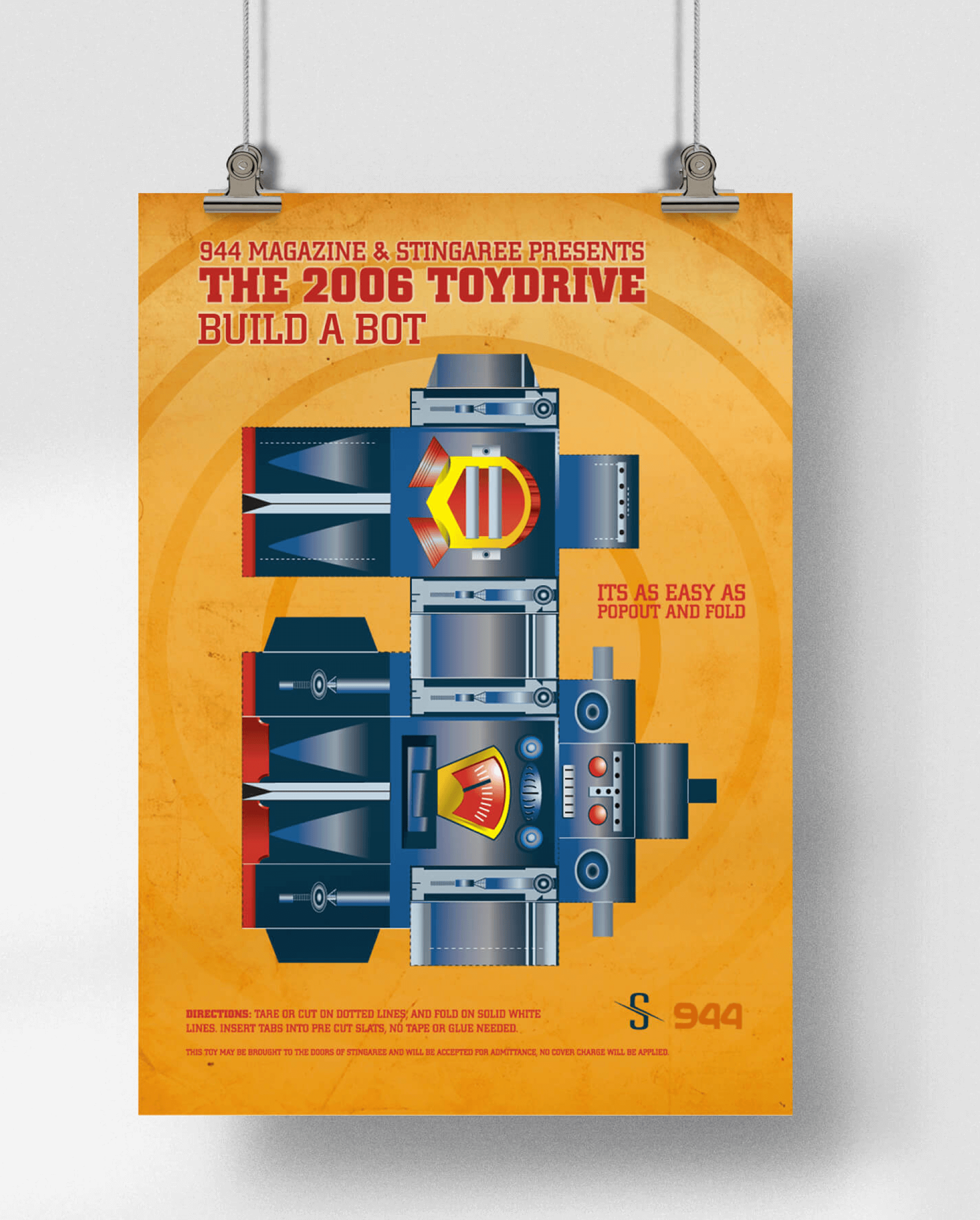 To kick off the holiday season, Stingaree, a prominent San Diego nightclub, 944 magazine, and the Gentlemen’s Alliance teamed up to host a toy drive showing support for the community's less fortunate children. Stingaree, a long-time client of LESS+MORE, commissioned the design agency to develop an innovative marketing campaign that created awareness and brought participants to the event. Initially, the campaign’s main component was a single ad that would run in the December issue of 944 magazine. However, as the brainstorming session evolved, it was decided that an additional die-cut robot ad would accompany the main ad.
